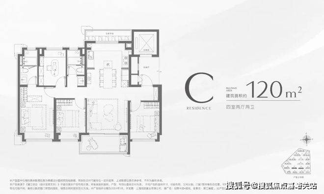 这个户型做到了同面积段罕见的四开间朝南+大宽厅设计,动静分离活动区域起居较为分开互不打扰。